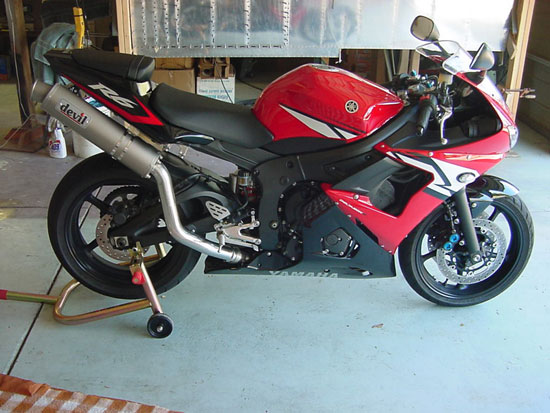 I sold the 2001 Champions edition R6 on 5-5-04. The 2004 Red R6 pictured above is my new baby. I brought her home from the showroom on Friday the 7th. I plan on doing some of the same mods I did to the 2001 CLE so check back for pictures and installation info.
